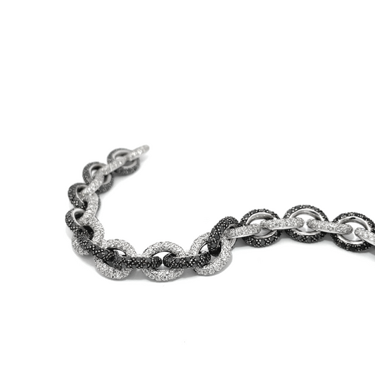 Black and White Diamond Pavé Link Bracelet in 18K Gold