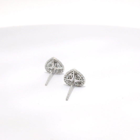 Heart-shaped Baguette and Brilliant Round Halo Diamond Stud Earrings in 18K White Gold