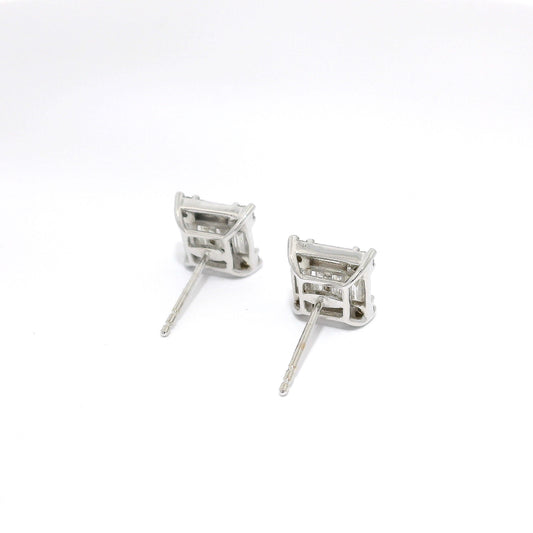 Princess-Cut Diamond Stud Earrings with Baguette and Brilliant Round Diamonds in 18K White Gold