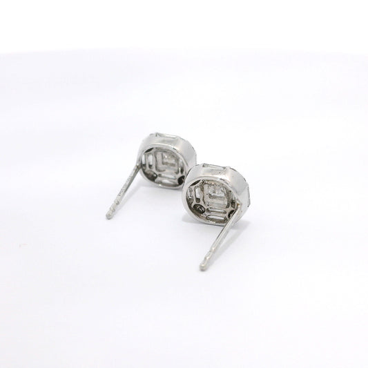 Square-shaped Ilusion-set Diamond Stud Earrings L